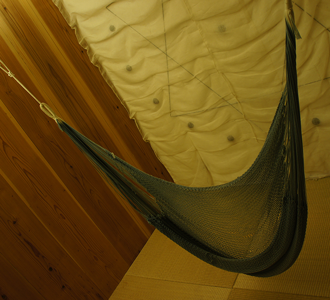 最も麻炭の持つ"喜び"のエネルギーが満ち溢れる空間です。壁、床、そして天井にある麻炭サークルがこの部屋の磁場を変え、心・身体・意識を本質へと導きます。